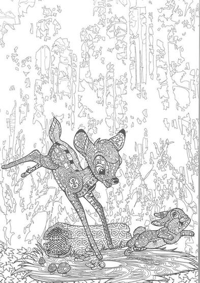 this one, on the other hand, is much better! not only is there wonderful detail on the characters, but there is a complex background to color and the details are not too small that they can't be colored.
